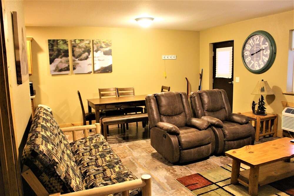 Our Creekside features two queen beds, each in a separate bedroom, and a shared bathroom. Located a short distance from the main lodge, named after its amazing view of the Spearfish Creek!