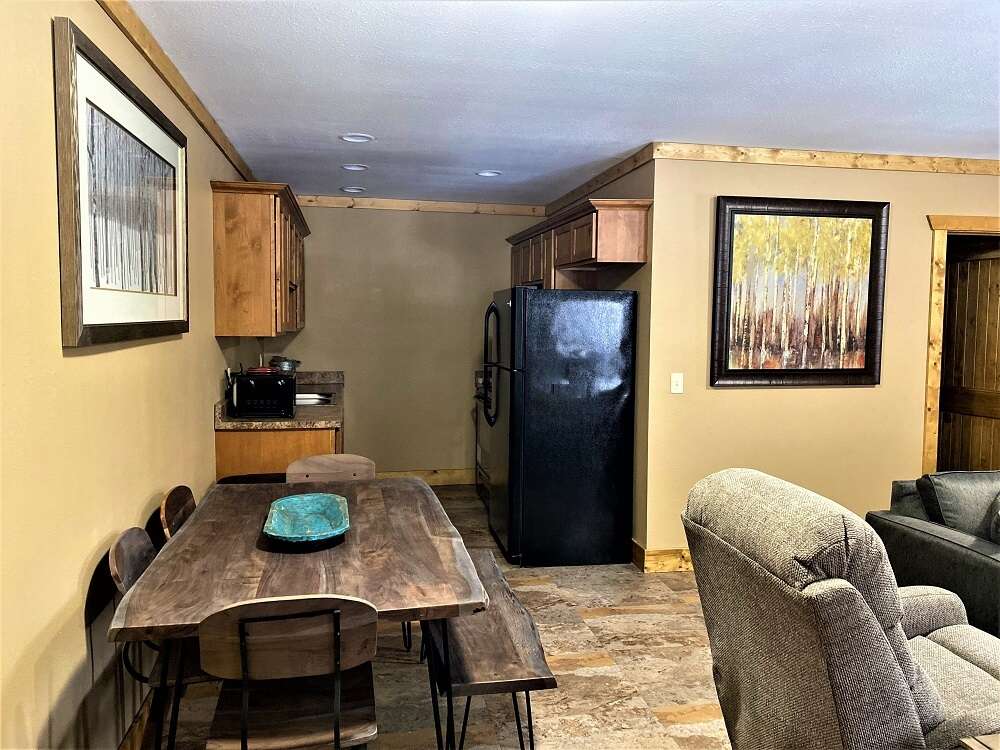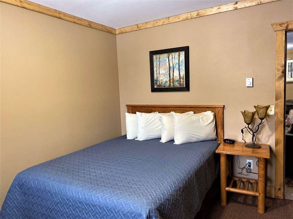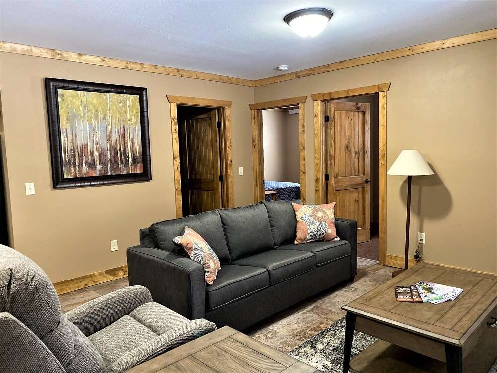 Our Creekside features two queen beds, each in a separate bedroom, and a shared bathroom. Located a short distance from the main lodge, named after its amazing view of the Spearfish Creek!